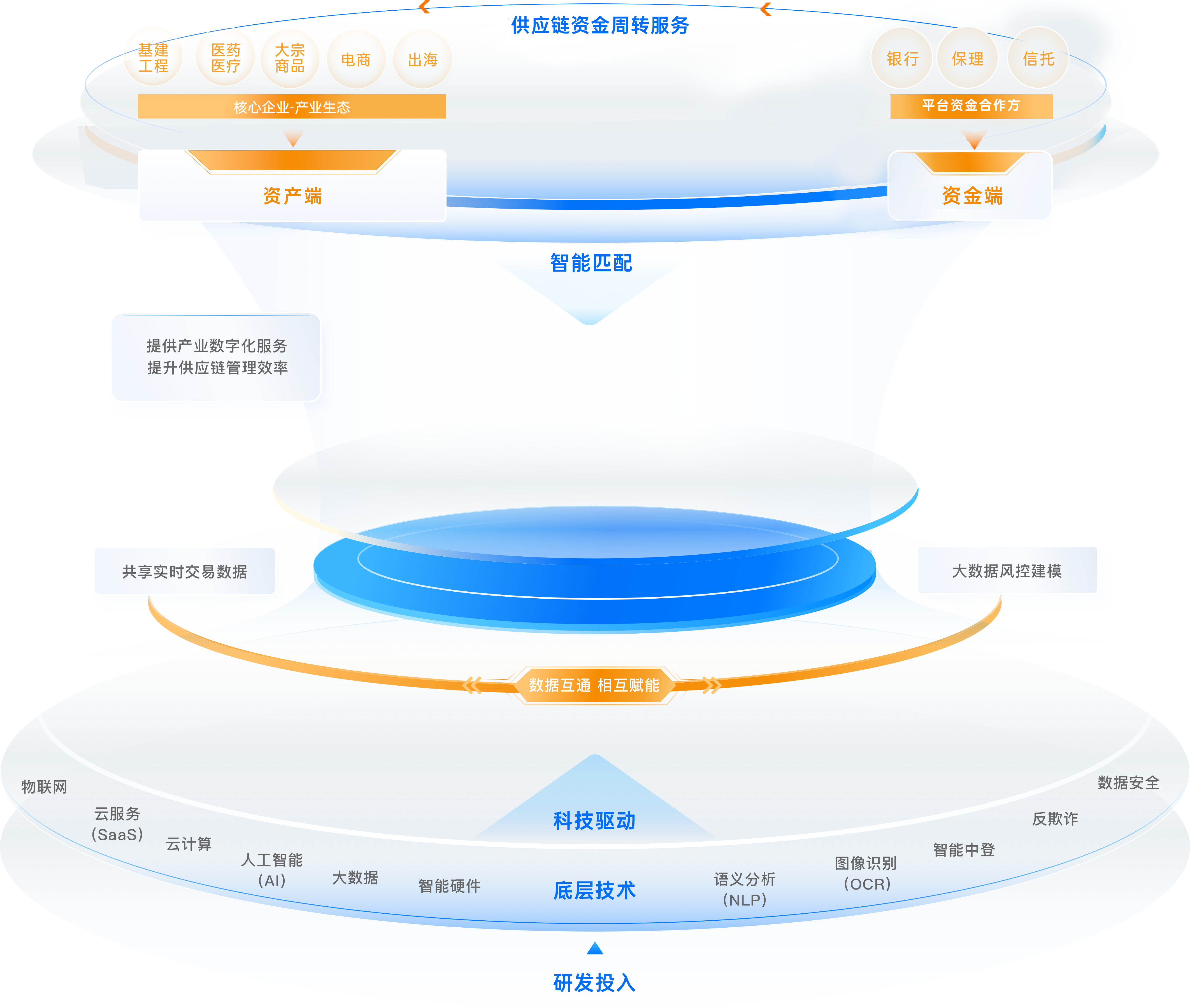 基于多年产业经验和金融科技创新成果,盛易通云平台将供应链场景中的核心企业、中小微供应商以及金融机构聚集到一个云平台,通过将信息转换为信用等金融科技,赋能中小微企业,助力中小微企业融资,并通过强大的大数据风控技术向金融机构赋能。这一平台整体提升了行业的供应链管理能力。